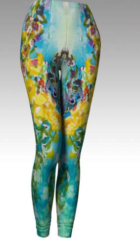 Custom wearable art leggings "Mexican Gold Poppies," with artwork by Andrea de Kerpely-Zak